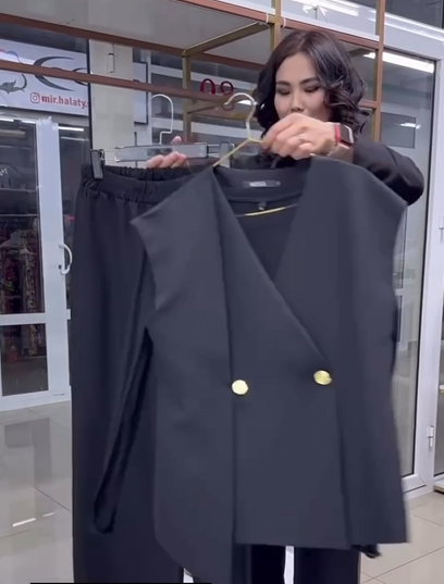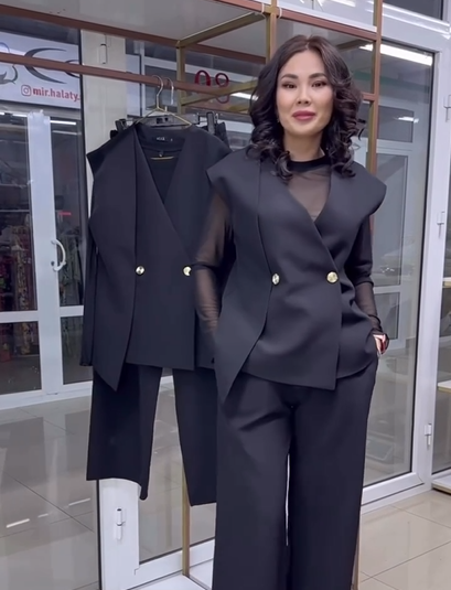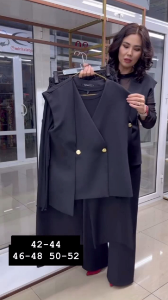 До Вашої уваги пропонується костюм тройка. Жилет з стильним елементом, брюки з карманами на ризинці та кофтинка.